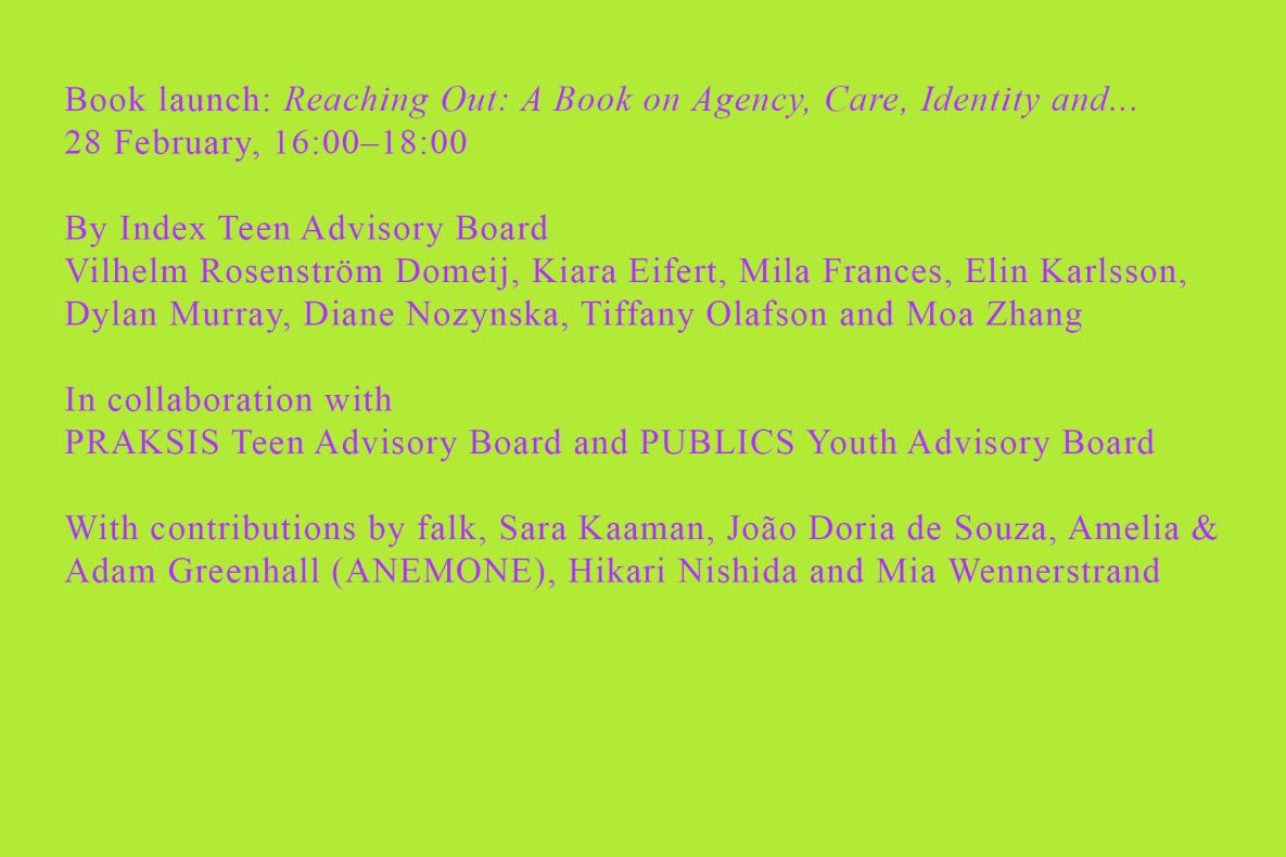 Join us on 28 February at 16:00 at Index for the release of Reaching Out: A Book on Agency, Care, Identity and… by the Index Teen Advisory Board (ITAB).
