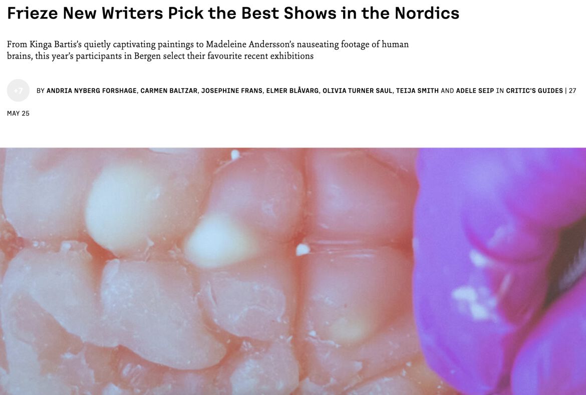 Elmer Blåvarg has written about Madeleine Andersson: SHOCK VALUE for Frieze as part of “Best Shows in the Nordics”. Below is an excerpt: